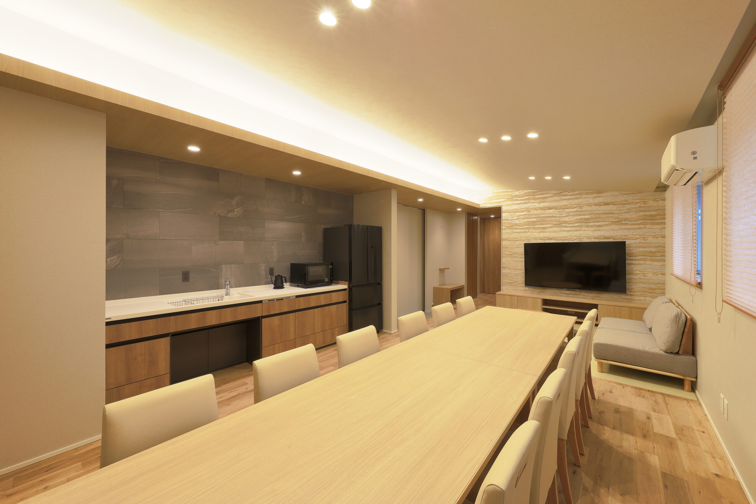 内部は、木や落ち着いた素材を基調に構成し、過度な演出を避けながら、時間の流れをゆるやかに受け止める環境を整えた。日常と非日常のあいだにある「静かな居場所」として、地域に寄り添う場のあり方を提案している。