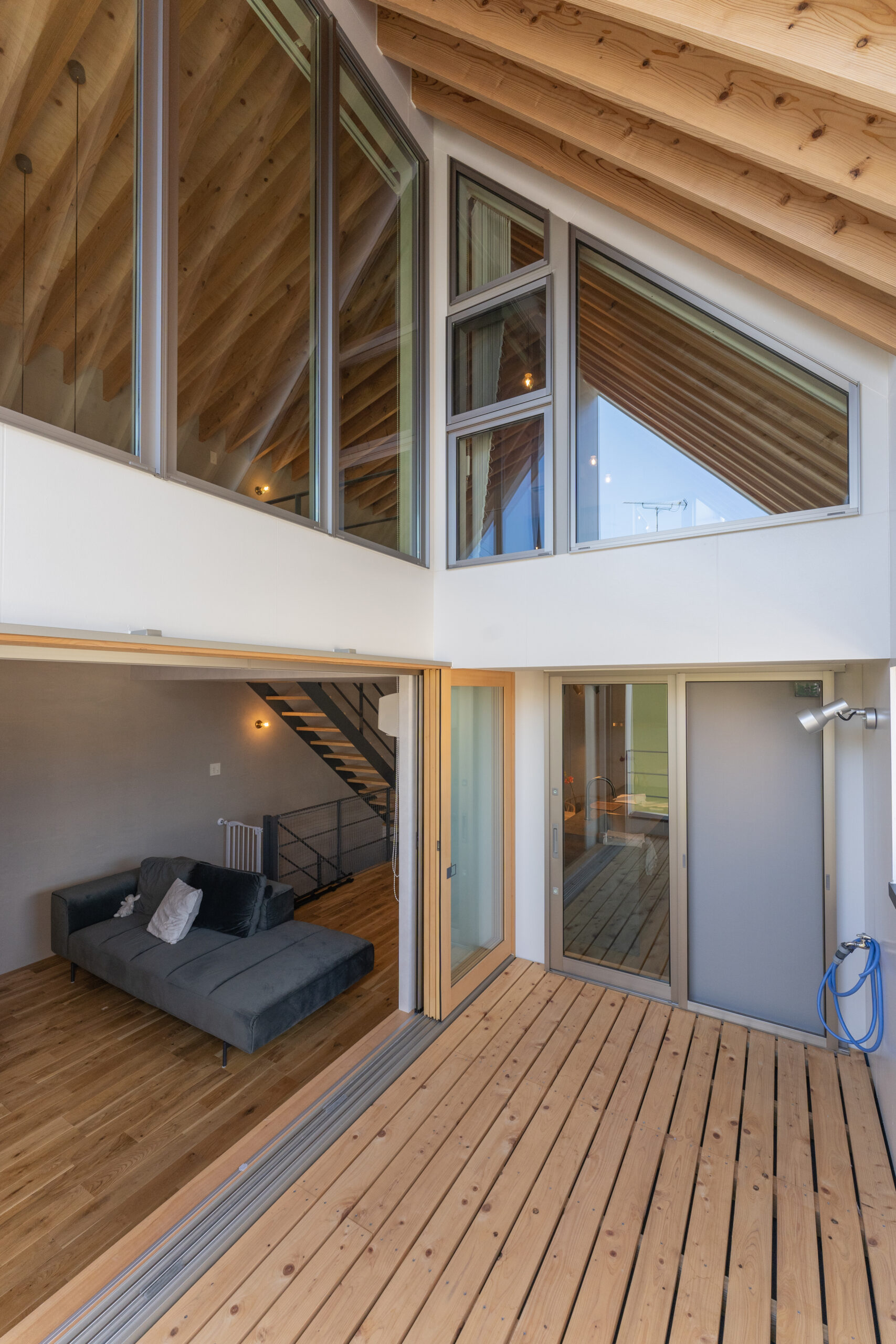 These voids respond to sunlight and views, while unified materials and carefully placed openings create continuity between interior and exterior.